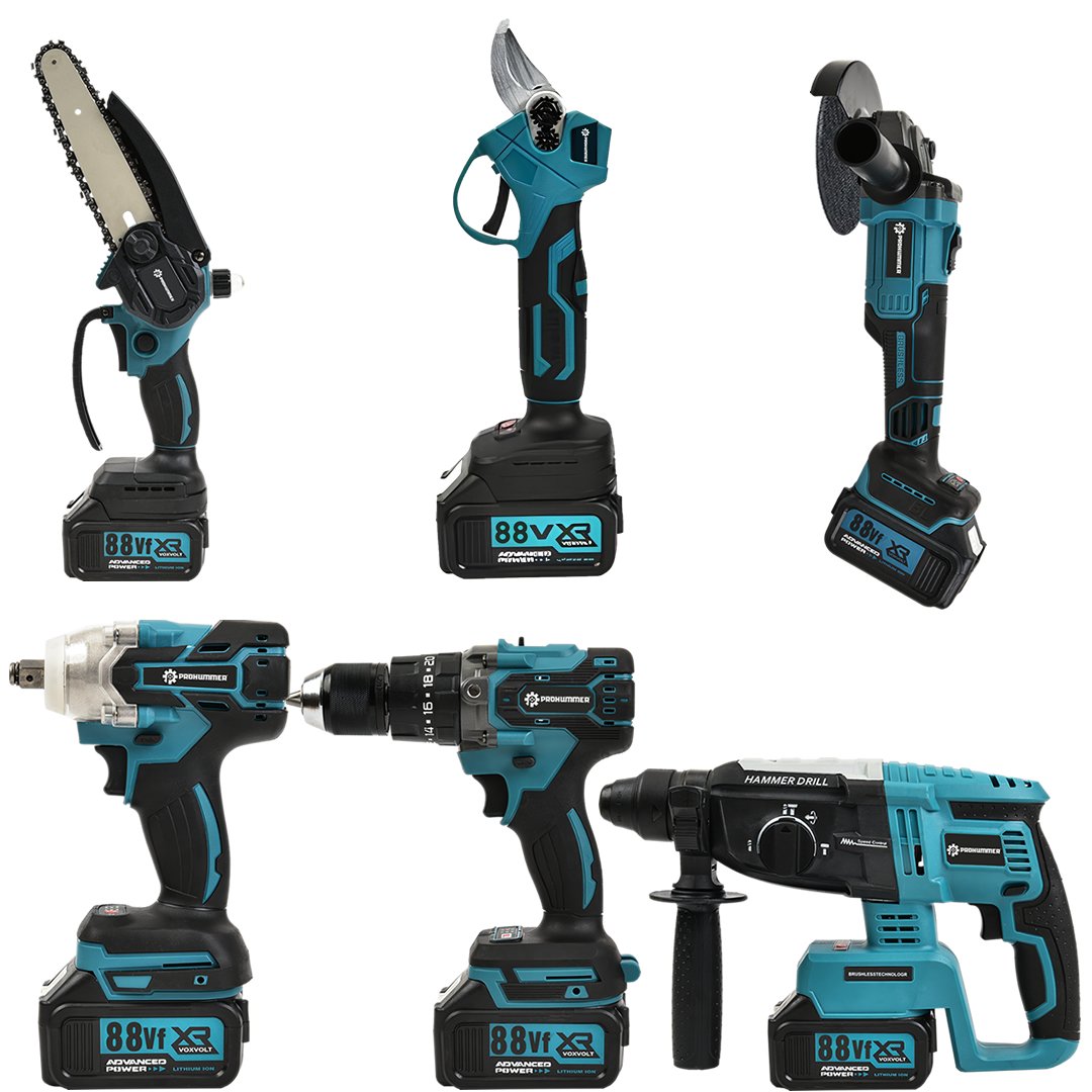 Prohummer PH253 Profesyonel Akülü Süper 6lı Set Makina 88vf 5ah 125mm Avuç Taşlama, Sds Plus Kırıcı Delic, Somun Sıkma Sökme, Vidalama Matkap, Budama Testere, Budama Makası